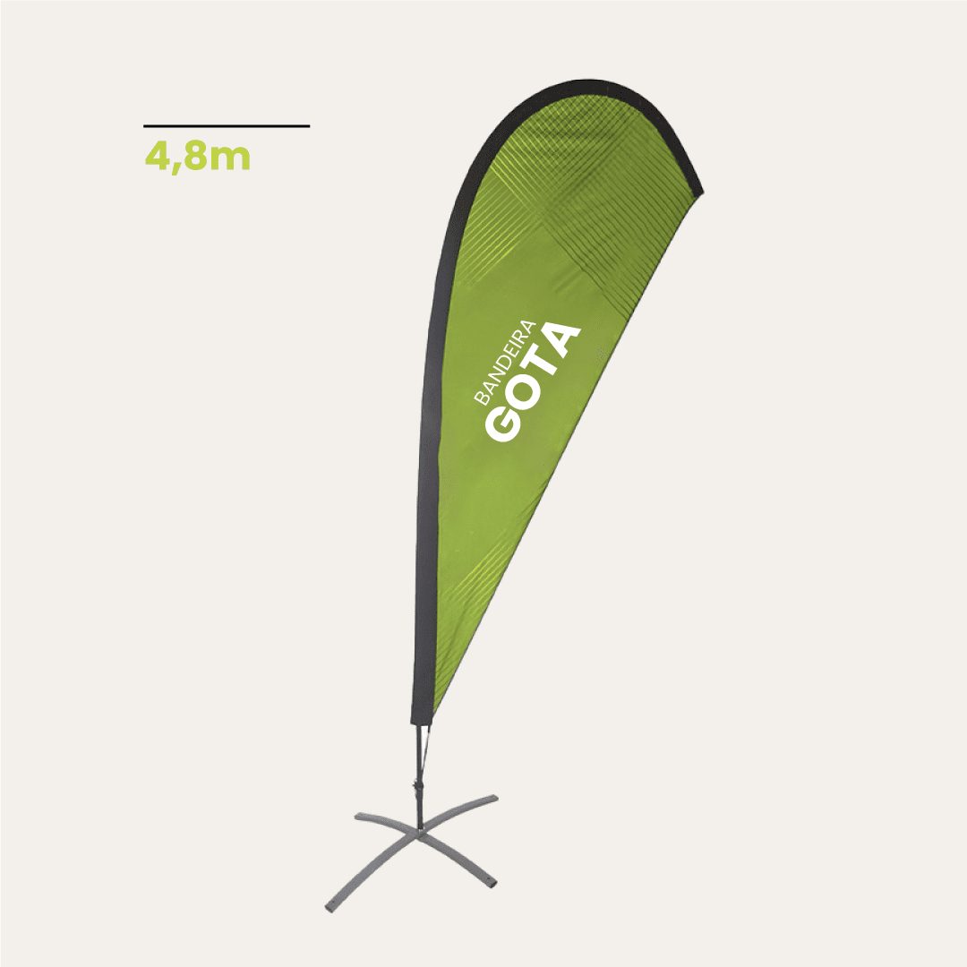 A estrutura de bandeira publicitária Gota é, a par da Wing, um formato clássico do nosso portefólio de bandeiras e um dos mais requisitados. Quando montada adquire a forma de uma gota de água.