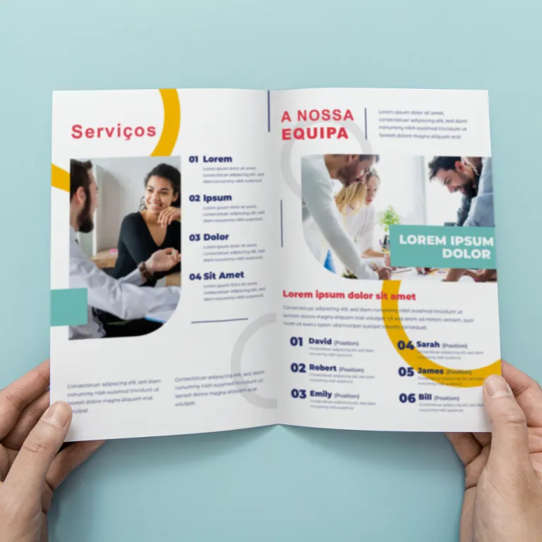 Os folhetos dípticos permitem divulgar os seus produtos ou os detalhes dos seus eventos em 4 páginas.